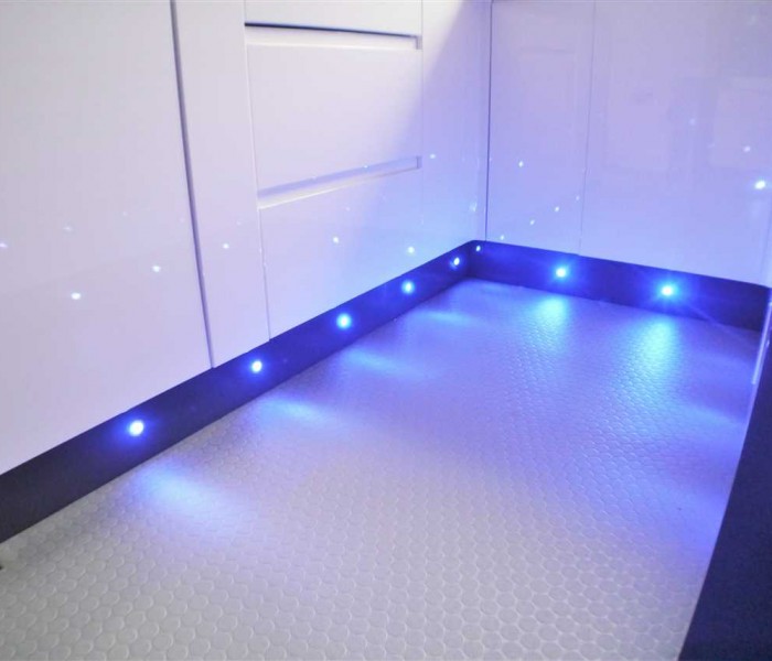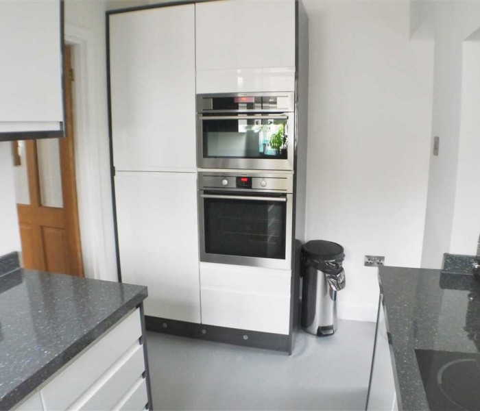 Stunning modern kitchen with a 6 month old Worcester boiler that has a 7 year warranty. New Zannusi induction 4 ring hob with AEG extractor. Integrated AEG double oven, microwave, Zannusi fridge freezer & electrolux dishwasher. Granite effect work tops with plenty of eye and low level gloss cupboards. 1 1/2 ceramic sink & drainer with mixer tap and pull out rinser. Green splash back. Grey vinyl flooring. Led spot lights and floor lights.