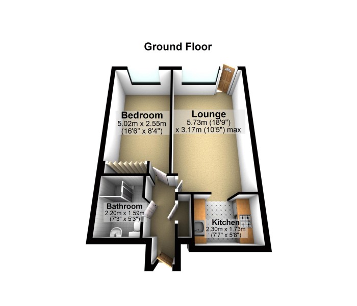 Bathroom 2.20m (7' 3") x 1.60m (5' 3")