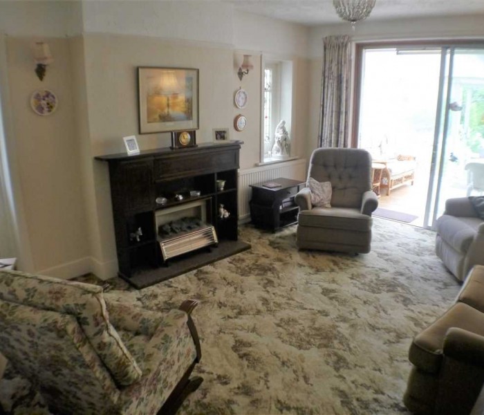 Great sized dual aspect lounge with original leaded stained glass windows, access direct to the conservatory that allows the natural light to flood in to both rooms. Acces via side door to lean-to, Original fire place and surround, carpeted.