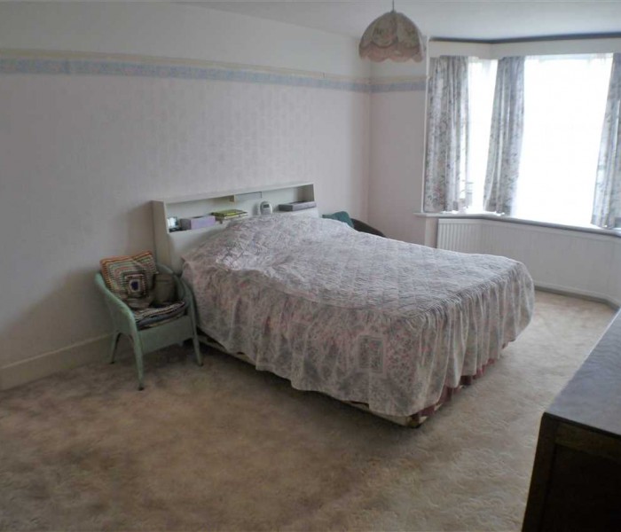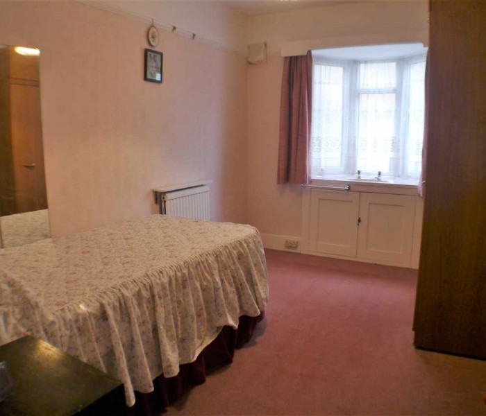 Double bedroom, uPVC double glazed south facing bay window, carpeted, radiator, sink.