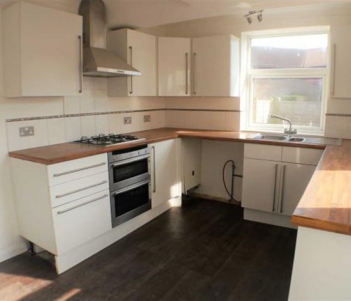 Communal kitchen that will have a 1 American style fridge freezer, 1 Smeg fridge freezer, washing machine, tumble dryer, dishwasher, microwave and a kettle for all the tenants to share. A 4 ring gas hob and oven, with stainless steel extractor, wood effect work tops. 1 and 1/2 stainless steel sink and drainer. Access into communal garden. Dual aspect uPVC Double glazed windows.