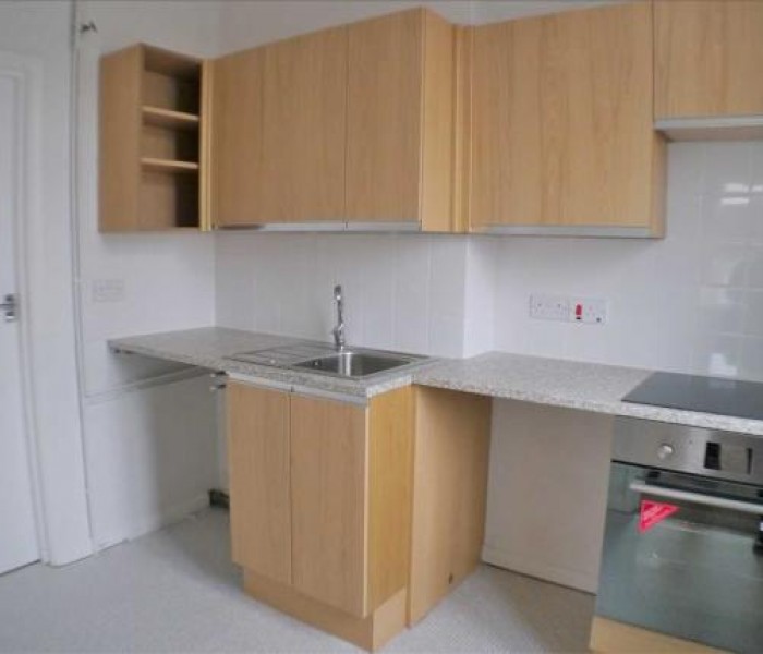 Separate kitchen, new stainless steel sink and drainer, new vinyl flooring, plumbing for washing machine, light wood effect eye level and base units. New marble effect work tops, new oven with 4 ring hob and plenty of storage options.