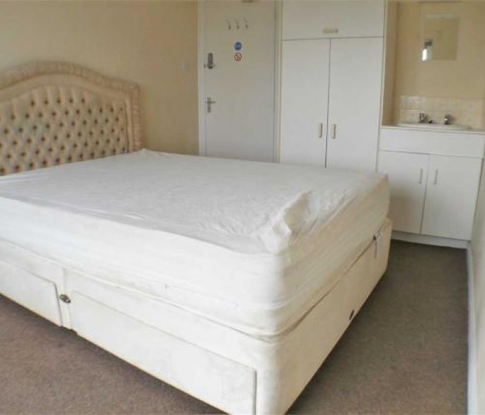 Large double bedsit room, with built in wardrobe and basin. Large double glazed windows with sea views! Single radiator. (the bed can remain)