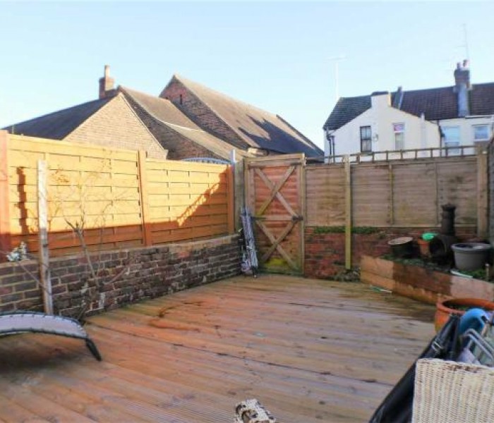 South facing rear garden that benefits from the sun most hours of the day, decked through out with planting area to the corner, lovely low maintenance.