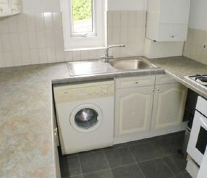 Good size country style kitchen, plenty of worktop space, wall mounted over and under storage units, w Upvc double glazed window, washing machine, fridge/freezer, elec oven and 4 ring hob, slate effect flooring.