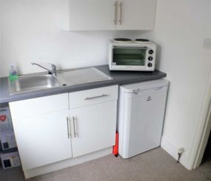 In brief the property consists of studio room and separate private kitchen with 2 Ring hob, Oven, & Fridge with freezer compartment. On street parking. , well maintained communal shower rooms.